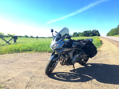 Staying close seemed/felt like a smart move, but I still couldn't put my finger on it. Sunshine, my Suzuki Bandit 1250s, is riding fine. I lubed her chain and did my morning checks but something still felt 'off' as I was headed down the long country road. The hairs on the back of my head were standing up. Something was definitely off.